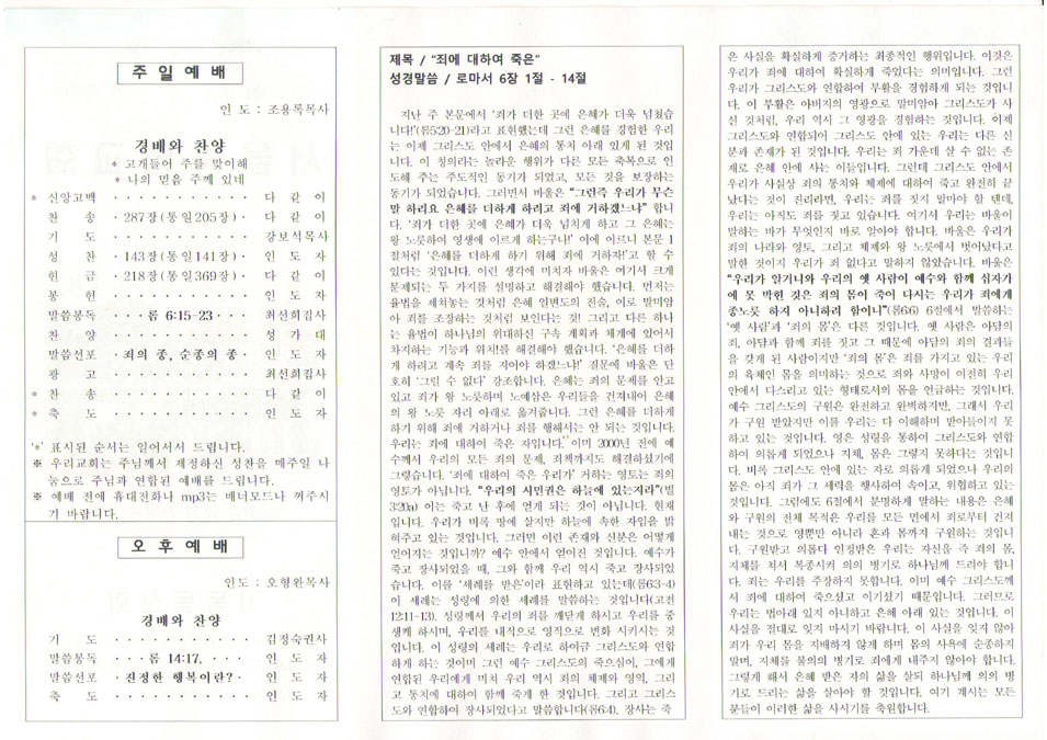 2018. 3. 18 2018년 03월 22일 주보 Share: Older Post 2018년 3월 18일 조용록 목사 말씀 – “죄의 종, 순종의 종” Newer Post 2018년 3월 25일 조용록 목사 말씀 – “예루살렘 입성”