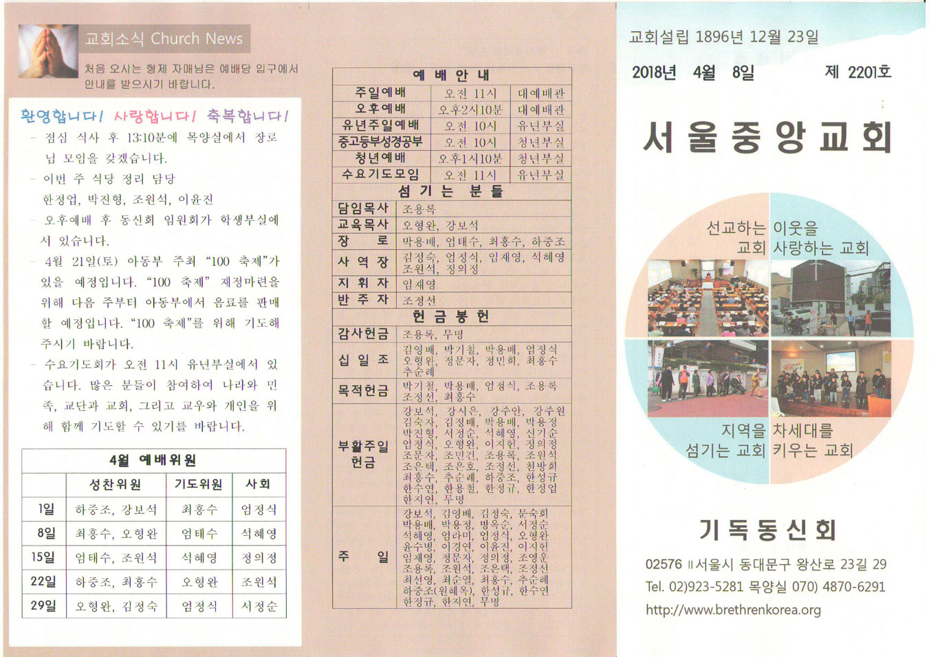 2018. 04. 08 2018년 04월 13일 주보 Share: Older Post 2018년 4월 8일 조용록 목사 말씀 – “열매를 맺게” Newer Post 2018년 4월 15일 조용록 목사 말씀 – “율법이 죄냐!”