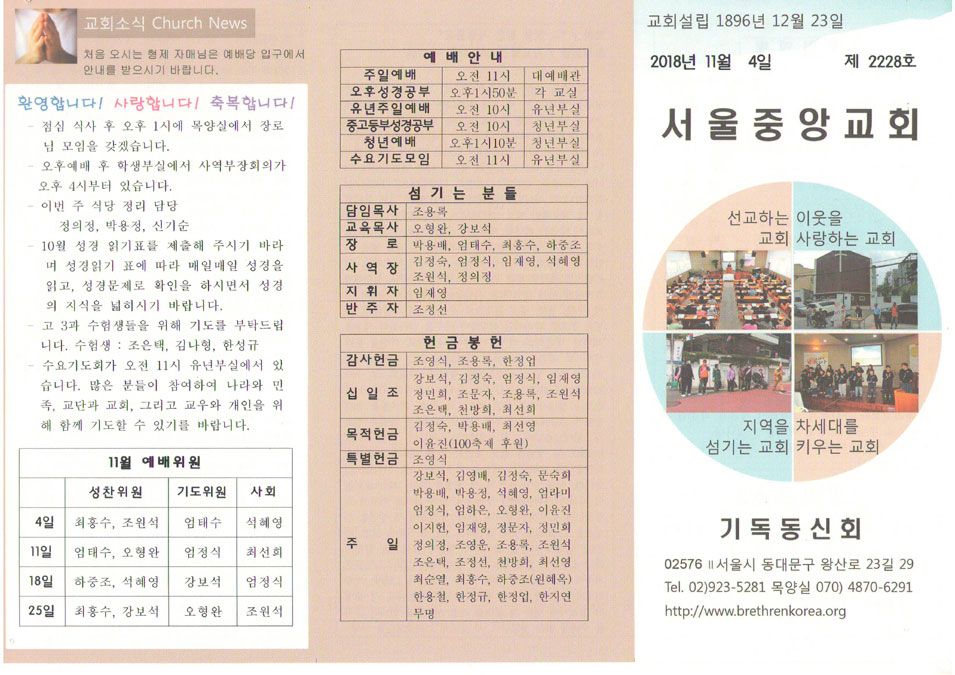2018. 11. 04 2018년 11월 10일 주보 Share: Older Post 2018년 11월 4일 조용록 목사 말씀 – “사도의 가르침” Newer Post 2018. 11. 11
