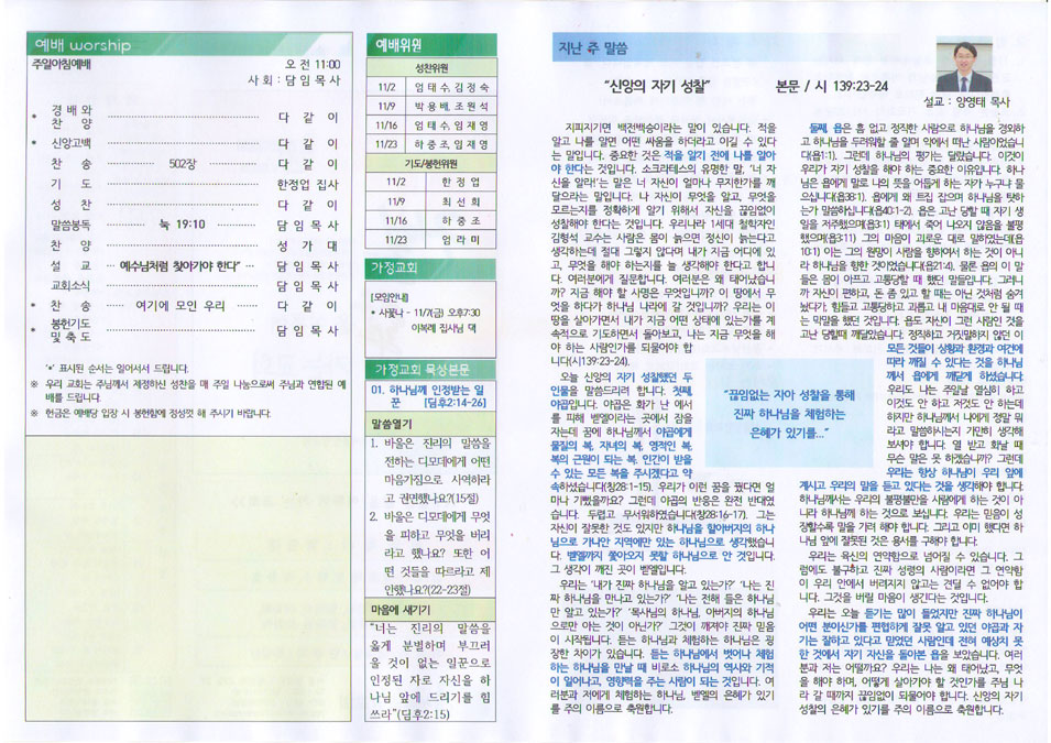 2025년 11월 2일 주보 2025년 10월 31일 주보 Share: Older Post 2025년 10월 26일 주보 Newer Post 2025년 11월 2일 양영태 목사 말씀 – “예수님처럼 찾아가야 한다”