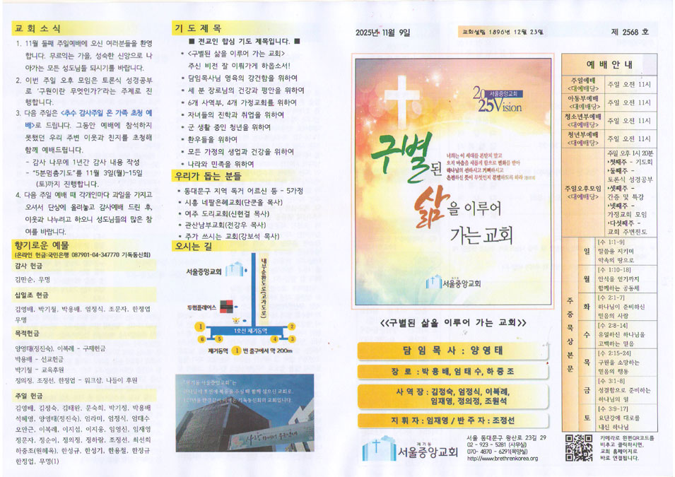 2025년 11월 9일 주보 2025년 11월 22일 주보 Share: Older Post 2025년 11월 16일 양영태 목사 말씀 – “그리고 그 다음에는” Newer Post 2025년 11월 16일 주보