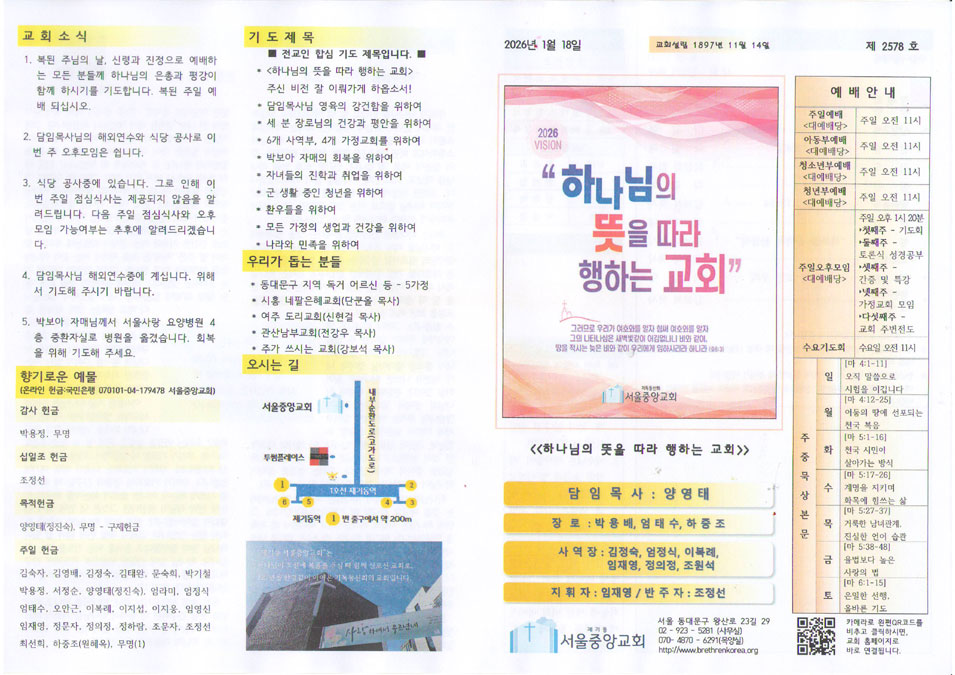 2026년 1월 18일 주보 2026년 01월 24일 주보 Share: Older Post 2026년 1월 18일 강보석 목사 말씀 – “목표를 끝까지 붙들라” Newer Post 2026년 1월 25일 주보