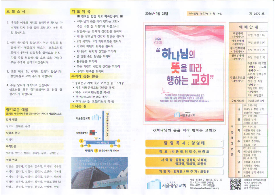 2026년 1월 25일 주보 2026년 01월 24일 주보 Share: Older Post 2026년 1월 18일 주보 Newer Post 2026년 1월 25일 양영태 목사 말씀 – “듣는 자가 살아난다”